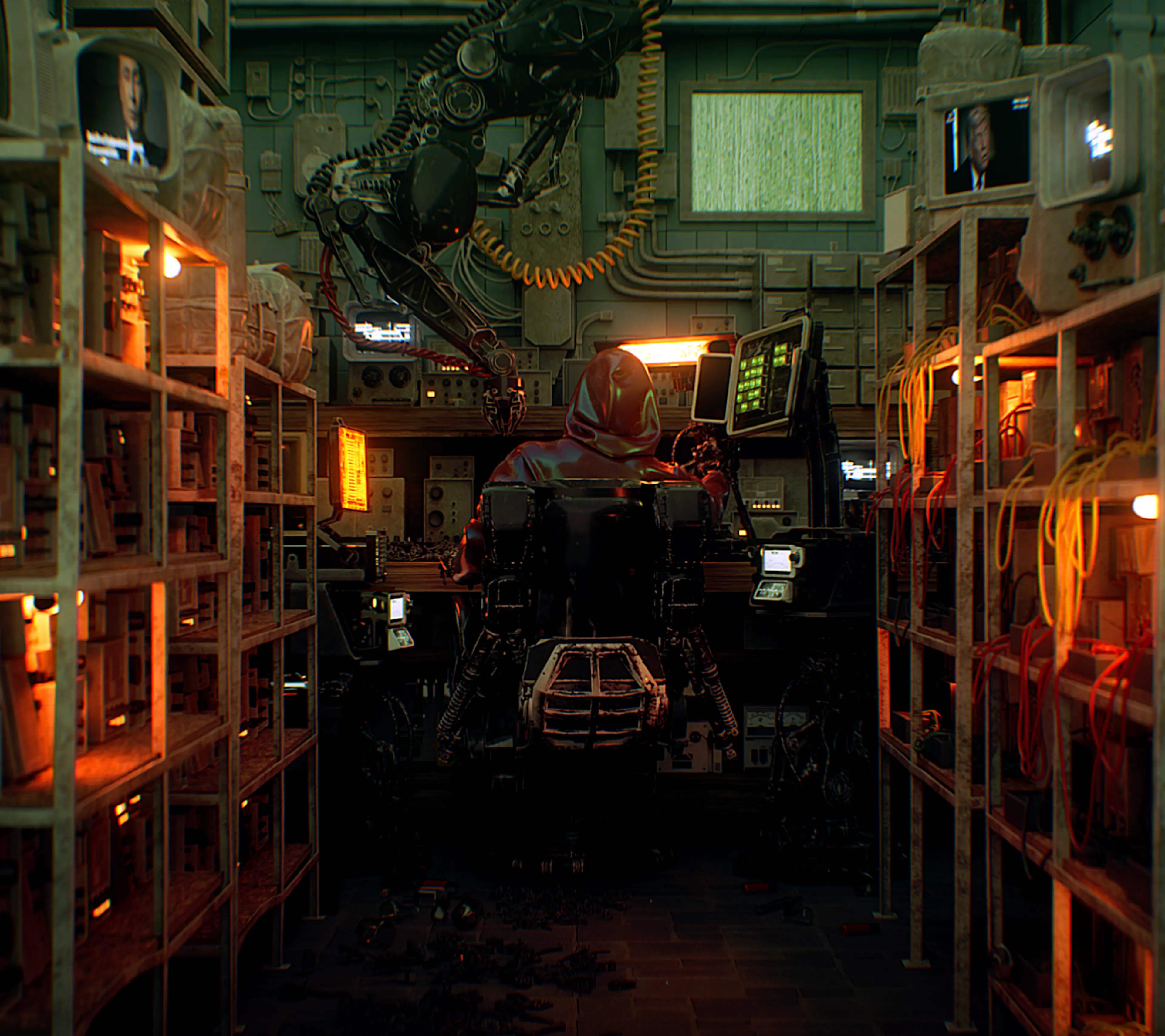 This project explores a retro-futuristic industrial sci-fi aesthetic, blending biopunk, cyberpunk, and analog machinery into a cohesive, atmospheric world. The visuals sit at the intersection of decay and precision, where advanced technology feels improvised, worn, and physically present rather than sleek or sterile.